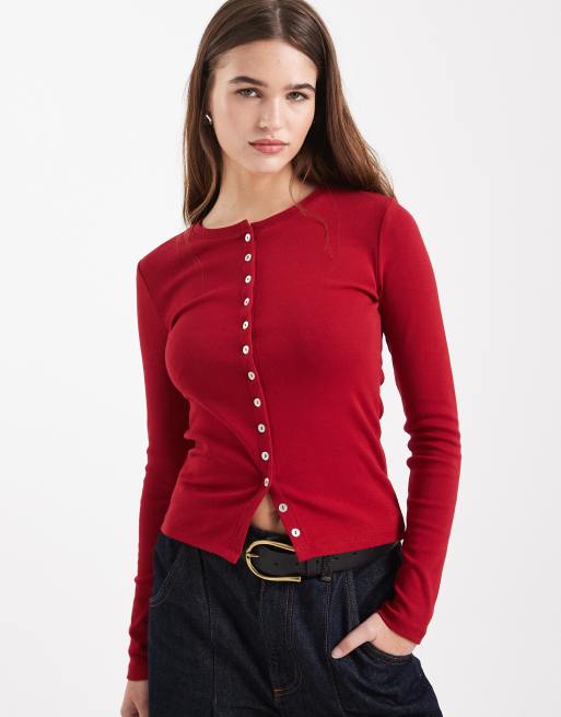 Cotton On - Cardigan rosso gioiello con bottoni