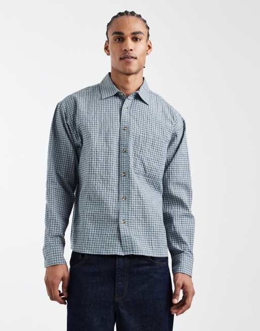 Cotton On - Hudson - Camicia a maniche lunghe blu a quadri micro