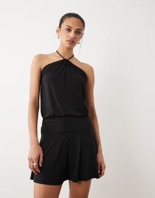 Cotton On - Kaity - Vestito corto allacciato al collo nero