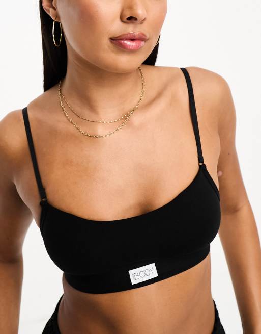 Cotton On - Brassière in cotone nera con logo e scollo rotondo