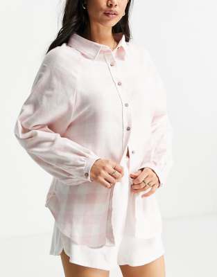 Cotton On - Camicia del pigiama rosa a quadri in coordinato