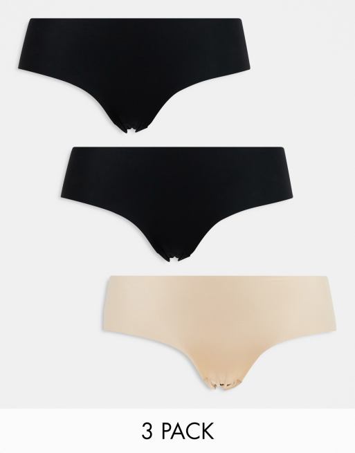 Cotton On - Confezione da 3 paia di slip invisibili neri e color frappè