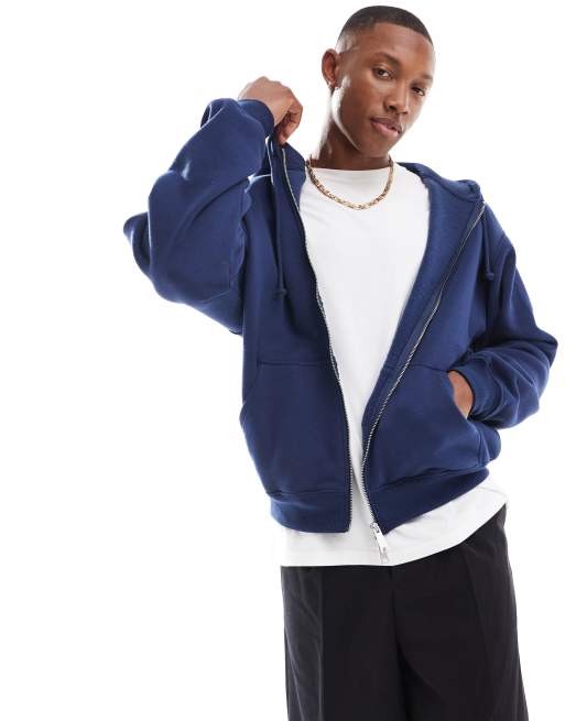 Cotton On - Felpa indaco squadrata con cappuccio e zip
