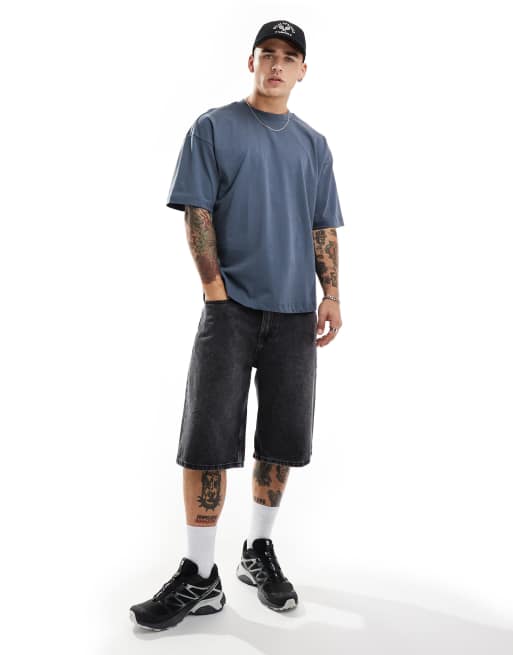 Cotton On - T-shirt blu denim squadrata con scollo rotondo