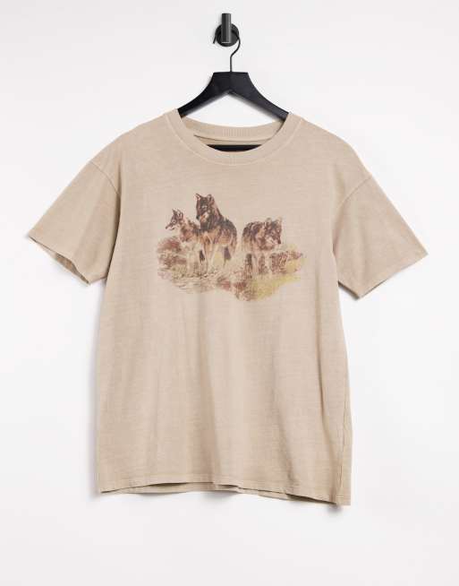 Cotton On - T-shirt oversize écru con stampa di lupi