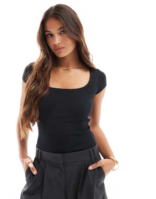 Cotton On - Top nero a maniche corte con bordi a festoncino