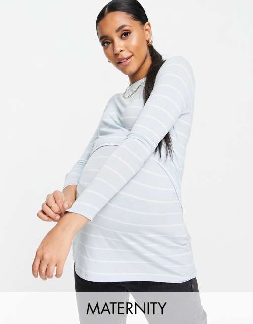 Cotton:On Maternity - Top a maniche lunghe blu a righe due in uno