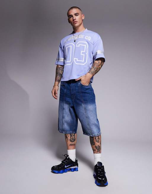 Courtside - Jorts in denim blu lavaggio medio con tasca ricamata sul retro e cuciture
