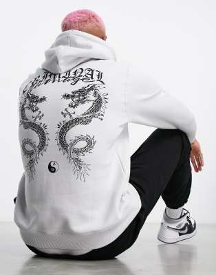 Criminal Damage - Felpa con cappuccio grigia con stampa di draghi sul retro in coordinato