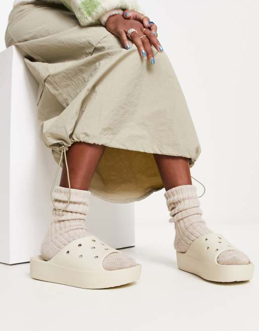 - Conosciute per il loro design inconfondibile e per le numerose colorazioni, le iconiche scarpe Crocs stanno tornando sulla cresta dell'onda. Realizzate con materiali impermeabili, plantari sagomati e ammortizzazione in mescola leggera, i sandali del brand sono l'ideale per regalare comfort e supporto senza paragoni ai tuoi piedi (che lo meritano sicuramente). Esplora la nostra selezione Crocs qui su ASOS per trovare i classici zoccoli tie-dye, stili con suola platform spessa, modelli con interno in pelliccia sintetica, sliders effetto marmo e calzini con logo. I tuoi piedi hanno una nuova anima gemella.