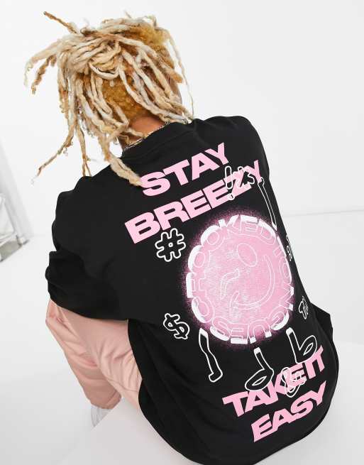 Crooked Tongues - Felpa oversize nera con stampa "Stay breezy"