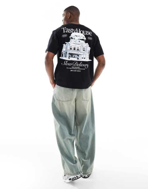 PIÙ COLORIJack & Jones - T-shirt oversize blu con stampa giapponese