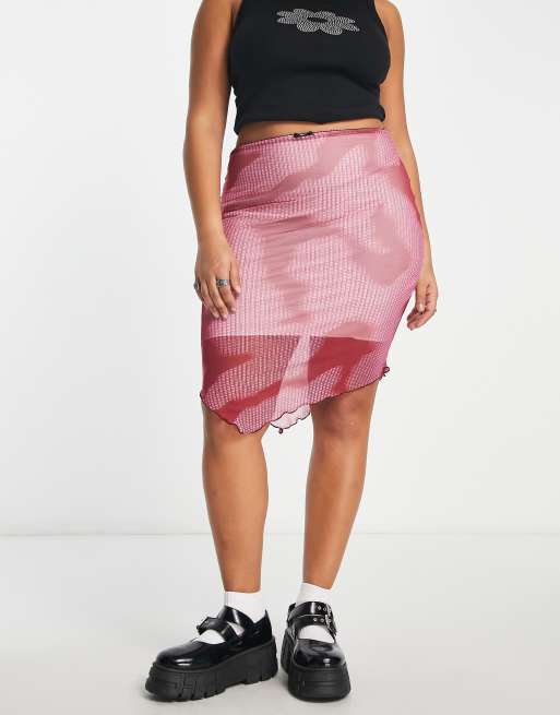 Daisy Street Plus - Gonna midi asimmetrica rosa con stampa