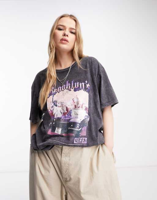 Daisy Street Plus - T-shirt comoda oversize grigio slavato stile grunge