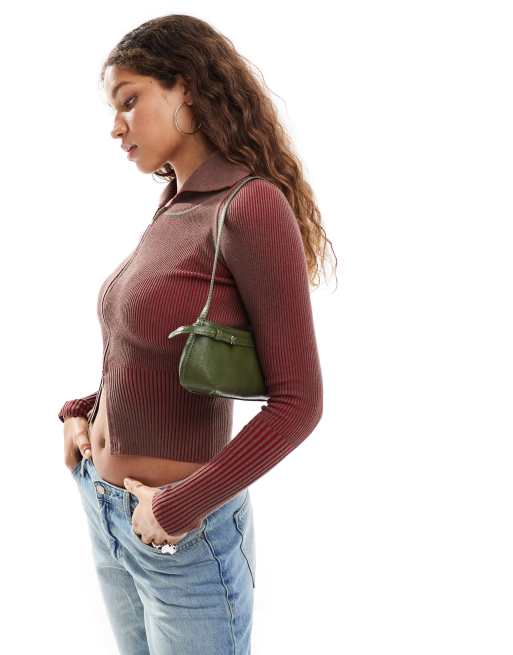 Daisy Street - Cardigan grigio e rosso a coste e a pieghe con colletto appariscente e zip