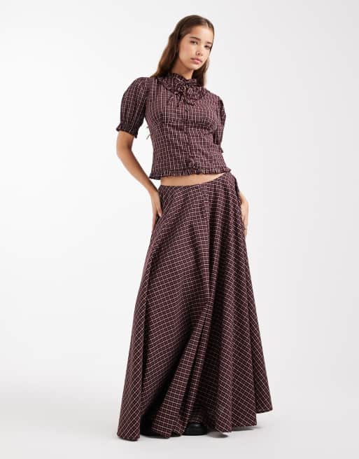 Daisy Street - Coordinato bordeaux a quadri con maniche a sbuffo
