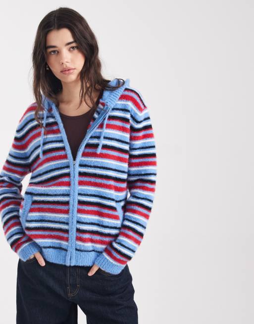 Daisy Street - Maglia soffice blu e rossa a righe con cappuccio e chiusura zip