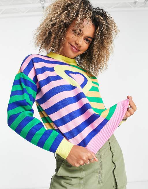 Daisy Street - Maglione comodo squadrato lavorato a maglia con stampa a righe miste con cuore