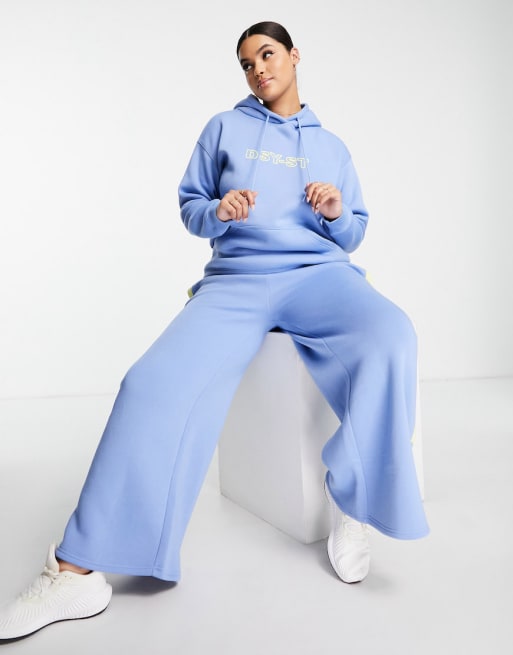 Daisy Street Plus - Active - Coordinato blu con felpa con cappuccio oversize joggers con bottoni a pressione