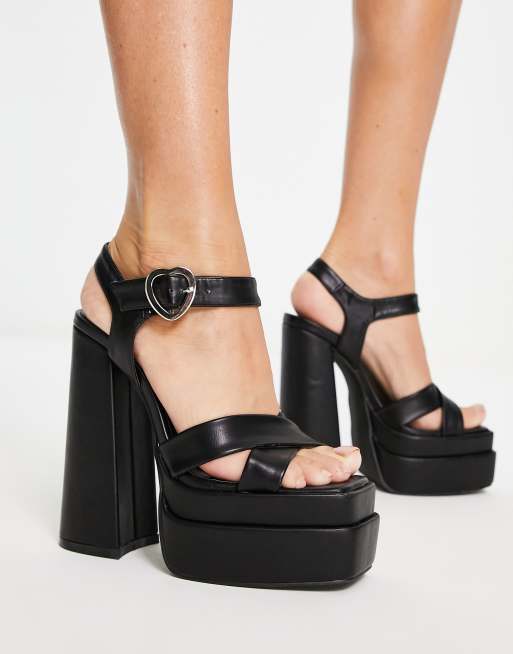 Daisy Street - Sandali con tacco e plateau neri con fibbia a cuore