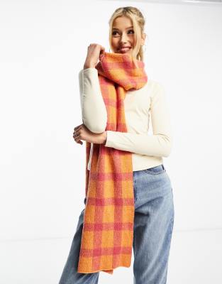 Daisy Street - Sciarpa effetto coperta a quadri rosa e arancioni