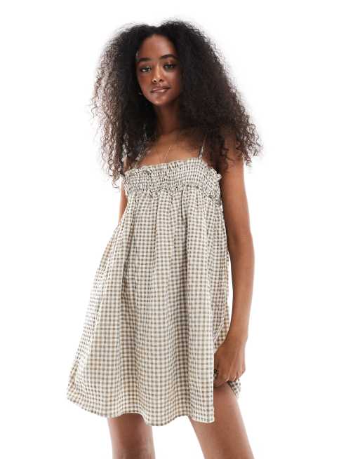 Daisy Street - Vestito corto a fascia arricciato marrone a quadretti