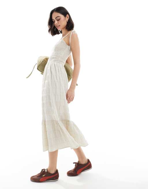 Daisy Street - Vestito lungo a quadretti beige con corpino arricciato