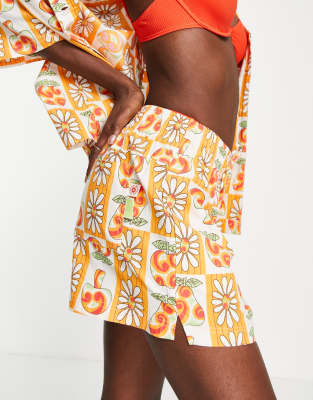 Damson Madder - Pantaloncini con stampa a fiori arancioni in coordinato
