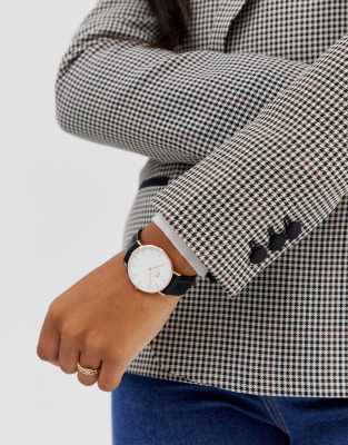 Daniel Wellington - Sheffield - Orologio grande classico nero con bordo oro rosa