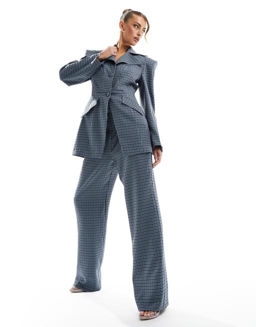 Daska - Pantaloni sartoriali in tweed a quadri blu in coordinato
