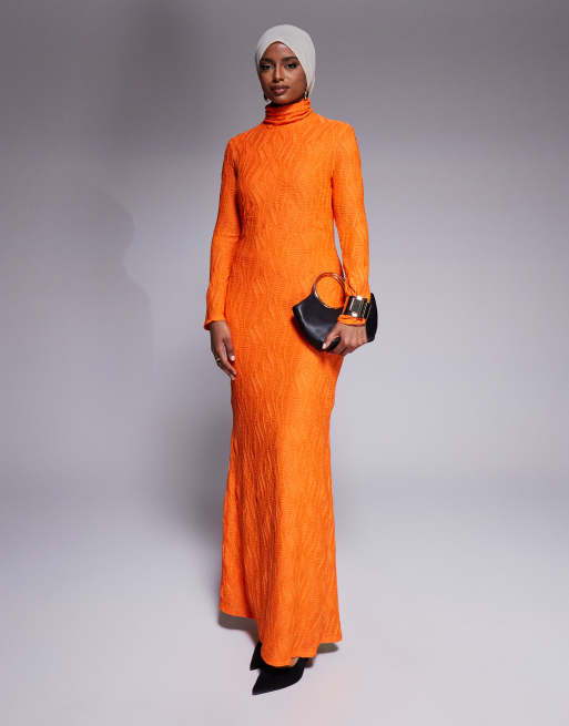 Daska - Vestito lungo arancione accollato