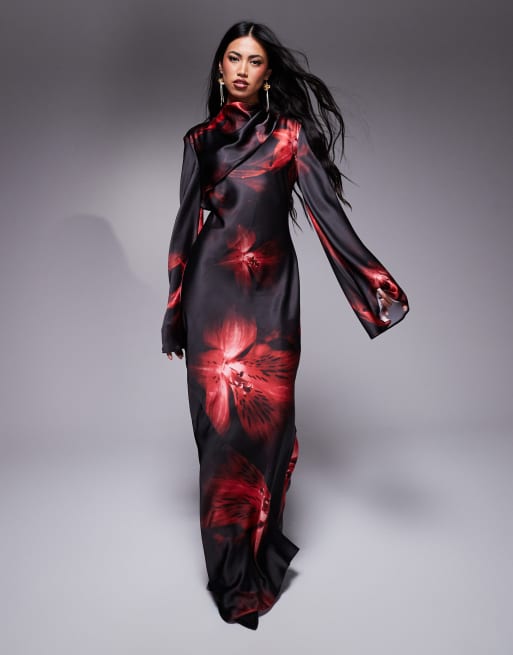 Daska - Vestito lungo in raso con stampa e maniche svasate