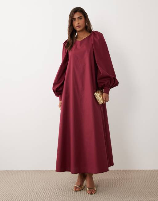 Daska - Vestito lungo oversize bordeaux con maniche a palloncino