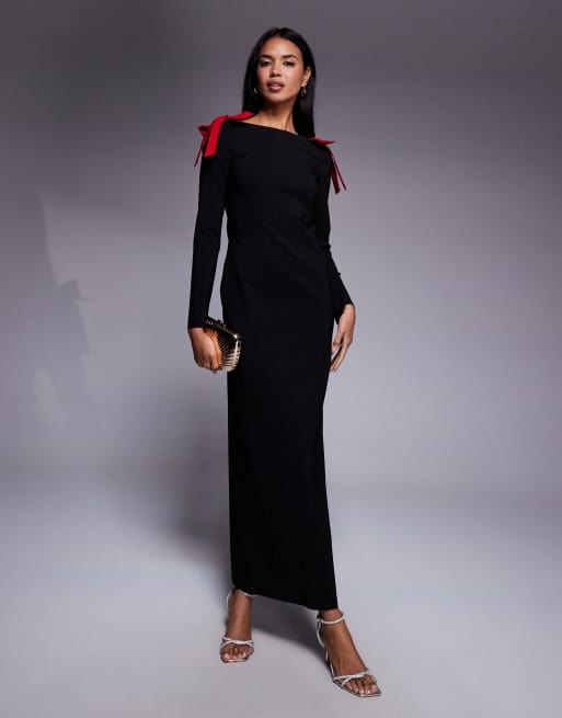 Daska - Vestito lungo rosso e nero con fiocchi sulle spalle