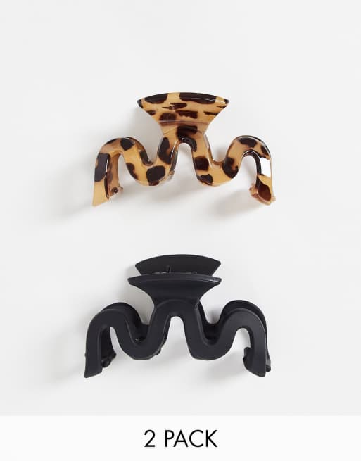DesignB London - Confezione da 2 fermagli per capelli in resina tartarugata e nera opaca