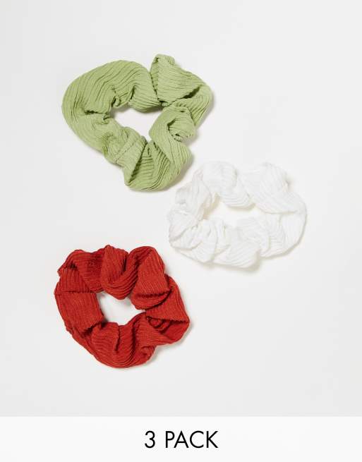 DesignB London - Confezione da 3 elastici plissé verde, rosso e bianco