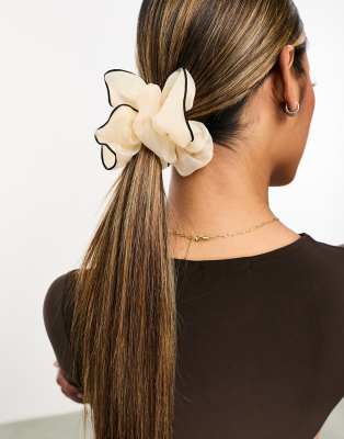 DesignB London - Elastico per capelli oversize in organza bianco sporco con cuciture a contrasto