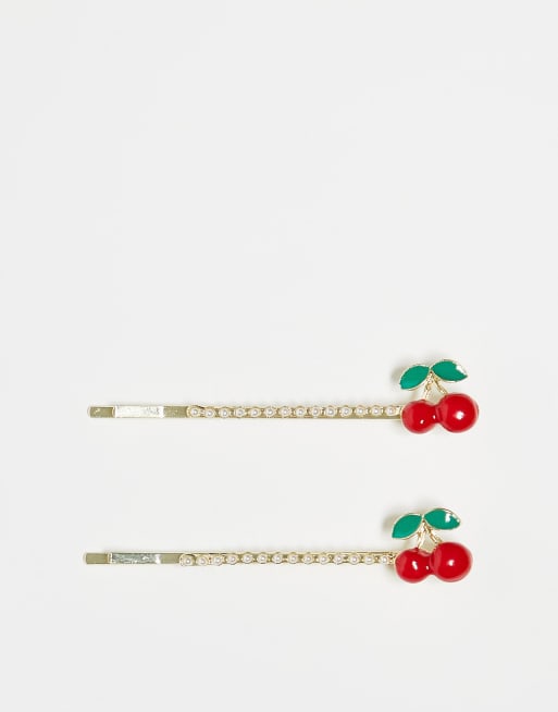 DesignB London - Fermagli per capelli con perline e ciliegie rosse