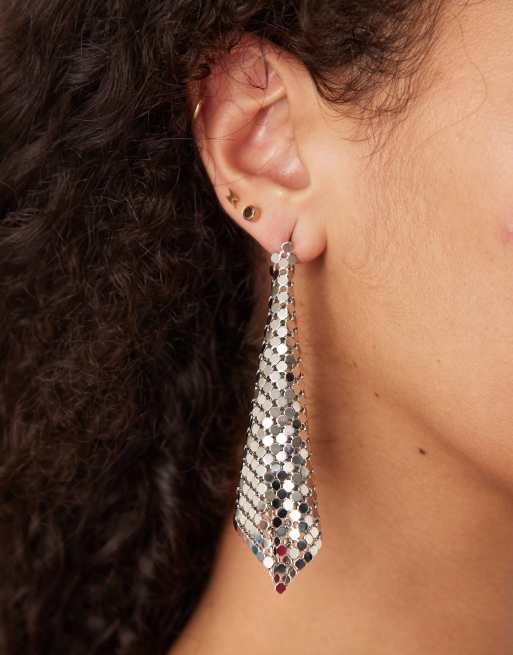 DesignB London - Orecchini pendenti argentati effetto rete