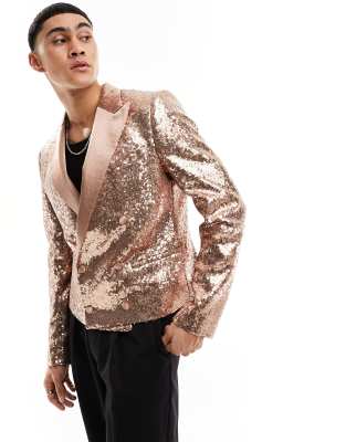 Devil's Advocate - Giacca da abito doppiopetto corta slim con paillettes oro