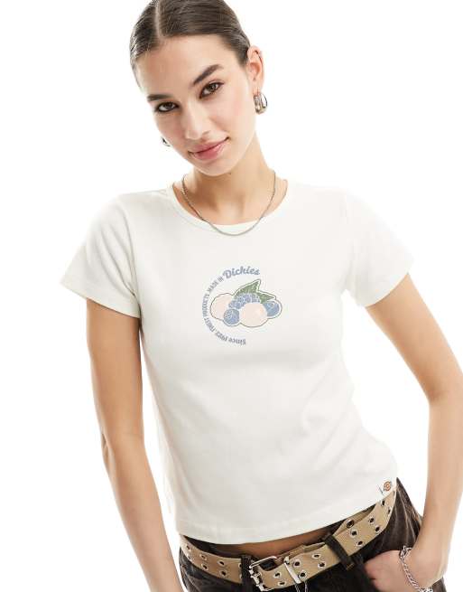 Dickies - Altoona - T-shirt ristretta bianco sporco con grafica centrale di frutta