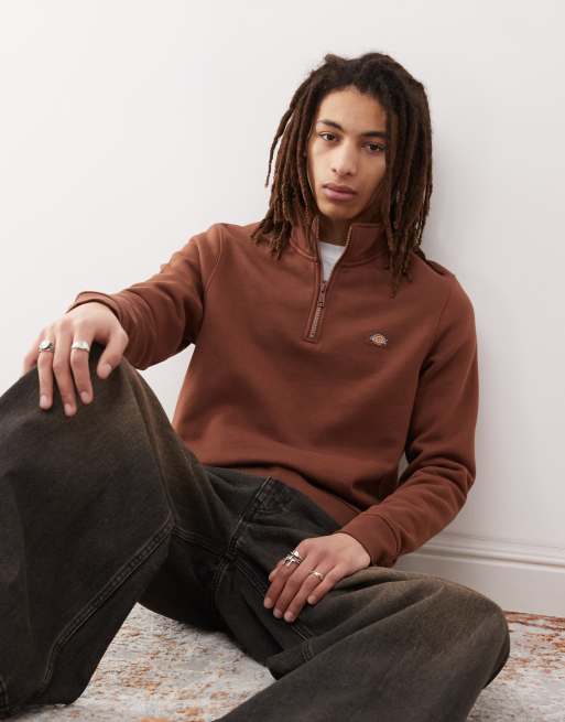 Dickies - Oakport - Maglione marrone cappuccino con zip corta e logo piccolo