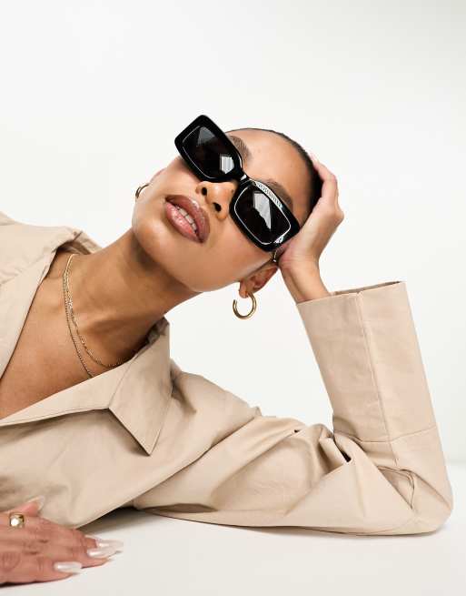 DIFF - Indy - Occhiali da sole rettangolari neri con lenti polarizzate