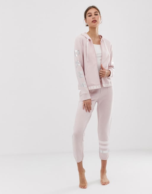 DKNY - Coordinato felpa con cappuccio, zip e logo e joggers
