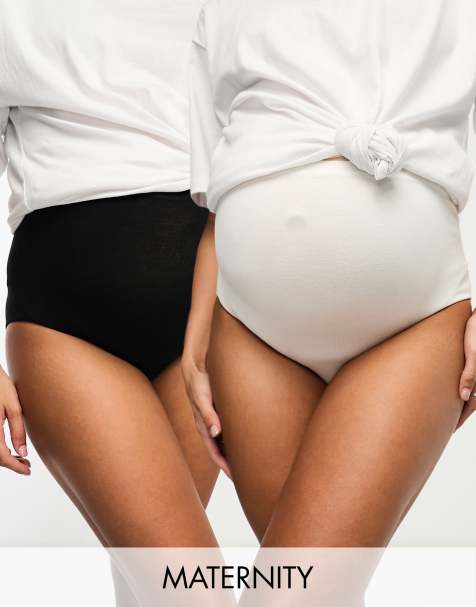 Mamalicious Maternity - Confezione da 2 paia di slip premaman contenitivi a vita alta bianco e nero