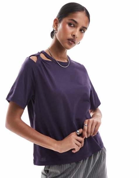 ASOS DESIGN - Top a maniche lunghe Cotton Touch grigio mélange con cut-out