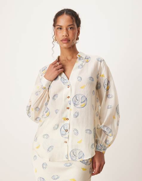 Never Fully Dressed - Camicia vestibilità comoda con stampa di limoni e ostriche in coordinato