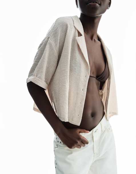 Bershka - Camicia a maniche corte bianca testurizzata stile rustico