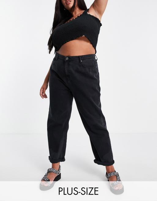 Don't Think Twice Plus - Katy - Jeans dritti corti a vita alta nero slavato