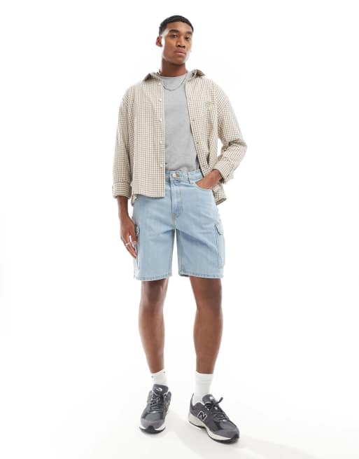 DTT - Pantaloncini di jeans cargo oversize blu chiaro